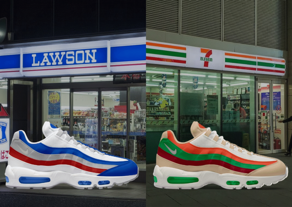 あくまでも両店へのオマージュとするカラーパレットになっており、「セブン-イレブン」仕様のモデルは、セイル、メタリックシルバー、トータルオレンジ、スポーツグリーン、ジムレッド、ライトブリティッシュタンのカラーリングが特徴、「ローソン」にインスパイアされたエアマックス95は、ホワイト、メタリックシルバー、ブルーサファイア、ライトスモークグレー、アクションレッドのカラースキームで展開。